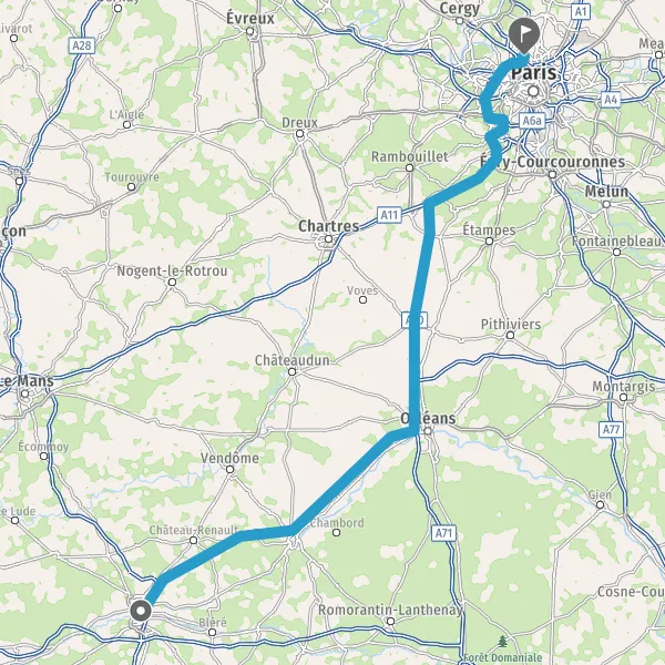 Prendre à droite et rejoindre A10 E5 E60. Continuer sur 107 kilomètres