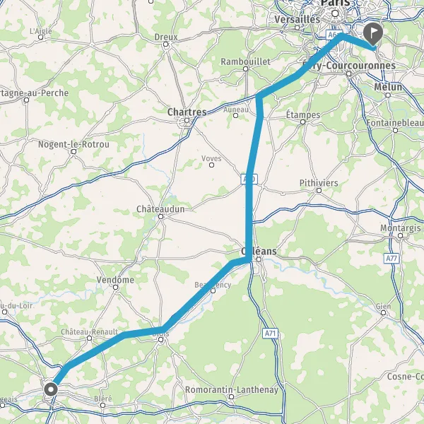 Prendre à droite et rejoindre A10 E5 E60. Continuer sur 107 kilomètres