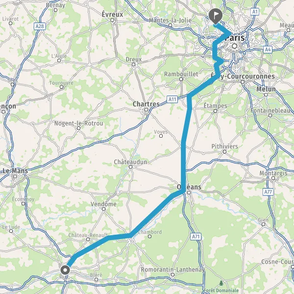 Prendre à droite et rejoindre A10 E5 E60. Continuer sur 107 kilomètres