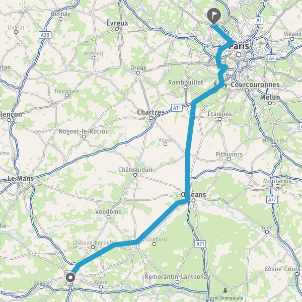 Prendre à droite et rejoindre A10 E5 E60. Continuer sur 107 kilomètres