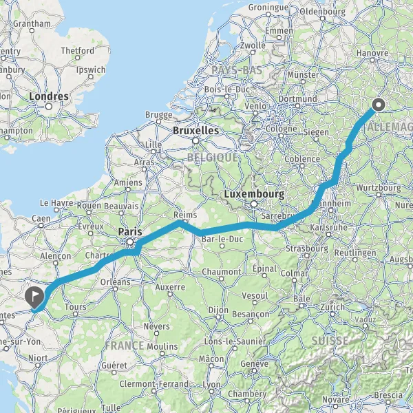 Prendre à droite et rejoindre A11 E50. Continuer sur 147 kilomètres