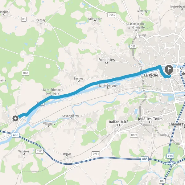 Avec le mode voiture, vous pouvez configurer vos options (type de véhicule, autoroute ou non, péage ou non, distance la plus courte), tout en ayant accès aux infos de circulation grâce à notre service d'info-trafic en temps réel. Ainsi faites des économies sur le coût ou la durée de votre voyage, en trouvant le trajet Cinq-Mars-la-Pile Tours adapté à vos besoins.