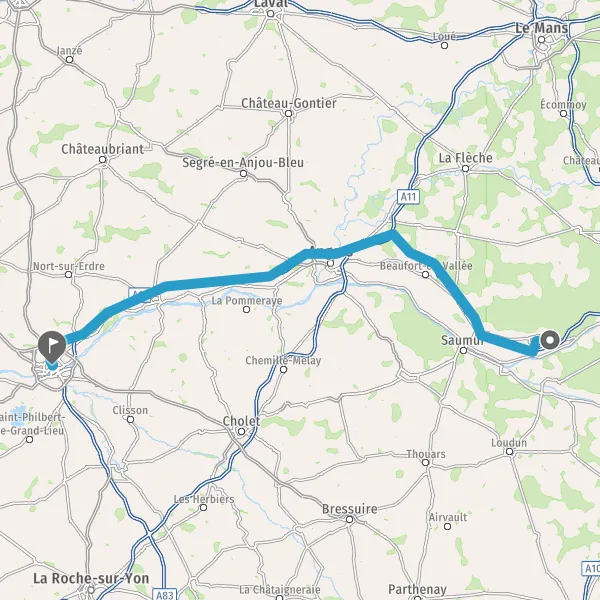 Prendre à droite et rejoindre A11. Continuer sur 103 kilomètres