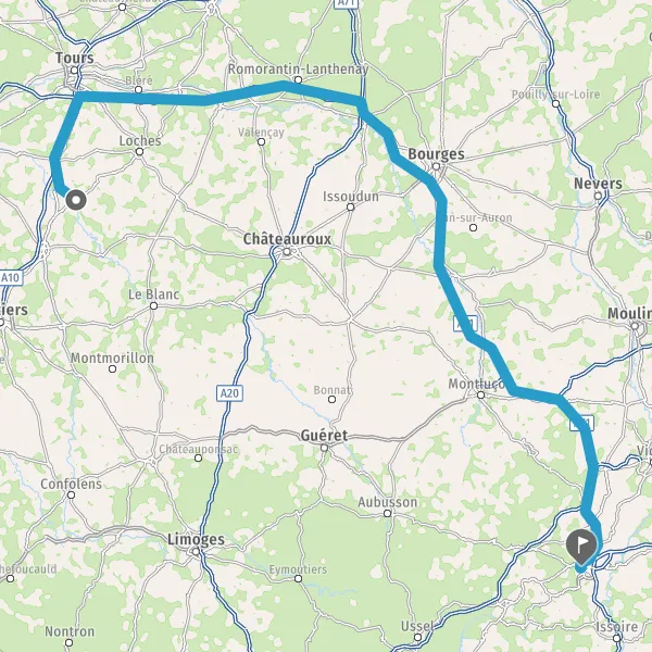 Prendre à droite et rejoindre A71. Continuer sur 5,5 kilomètres