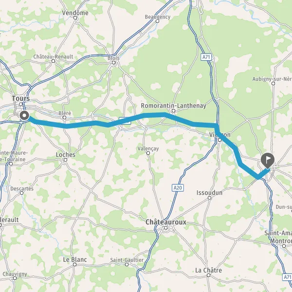 Prendre à droite et rejoindre A71. Continuer sur 5,5 kilomètres