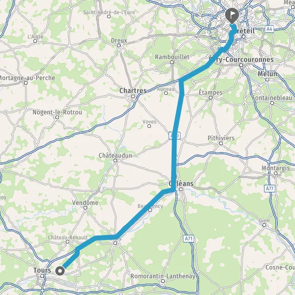 Continuer et rejoindre A10 E5 E60. Continuer sur 79 kilomètres