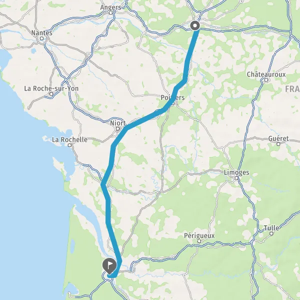 Avec le mode voiture, vous pouvez configurer vos options (type de véhicule, autoroute ou non, péage ou non, distance la plus courte), tout en ayant accès aux infos de circulation grâce à notre service d'info-trafic en temps réel. Ainsi faites des économies sur le coût ou la durée de votre voyage, en trouvant le trajet Joué-lès-Tours Bordeaux adapté à vos besoins.
