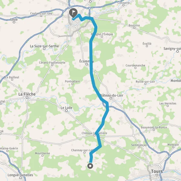 Tourner légèrement à droite sur D67 (Route de Souvigné) et continuer sur 4,6 kilomètres