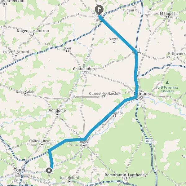 Au rond-point, prendre la 2ème sortie sur D7154 (Avenue d'Orléans) et continuer sur 1 kilomètre