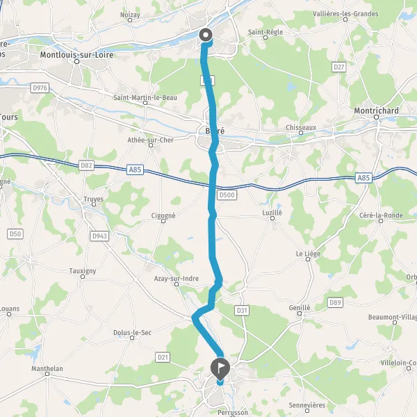 Tourner légèrement à droite sur D31f (Rue de Loches) et continuer sur 4,4 kilomètres