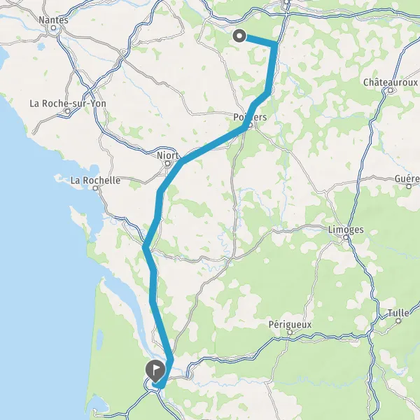 Avec le mode voiture, vous pouvez configurer vos options (type de véhicule, autoroute ou non, péage ou non, distance la plus courte), tout en ayant accès aux infos de circulation grâce à notre service d'info-trafic en temps réel. Ainsi faites des économies sur le coût ou la durée de votre voyage, en trouvant le trajet Chinon Bordeaux adapté à vos besoins.