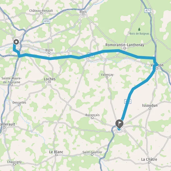 Au rond-point, prendre la 2ème sortie sur D943 (Route de Châteauroux) et continuer sur 21 kilomètres