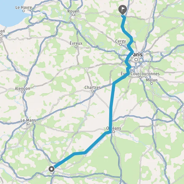 Prendre à droite et rejoindre A10 E60 E5. Continuer sur 105 kilomètres