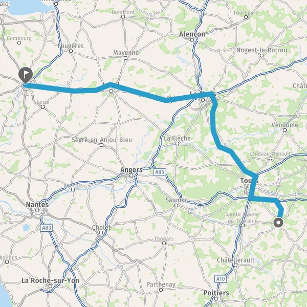 Prendre à droite et rejoindre A85. Continuer sur 500 mètres