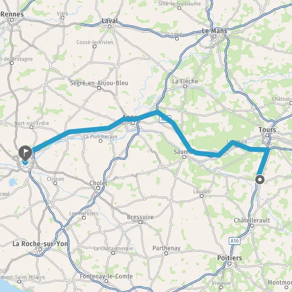 Continuer et rejoindre A85 E60. Continuer sur 99 kilomètres