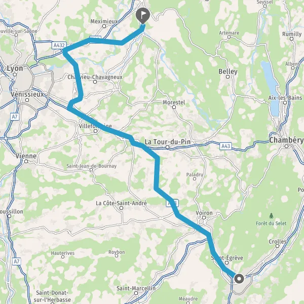 Au rond-point, prendre la 3ème sortie sur D1075 (Route du Dauphiné) et continuer sur 7,6 kilomètres