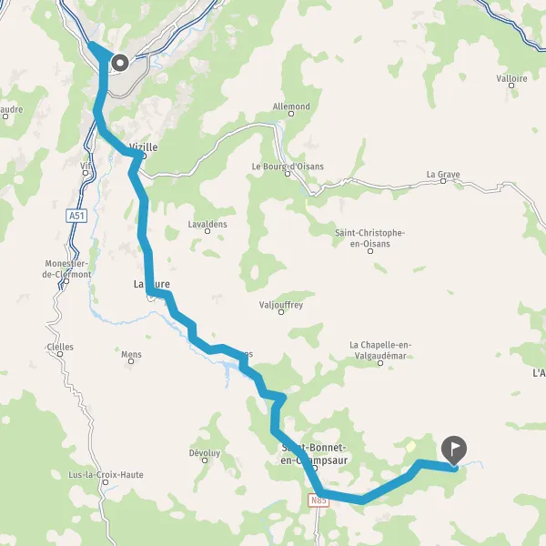 Tourner légèrement à droite sur N85 (Route Napoléon) et continuer sur 8,9 kilomètres