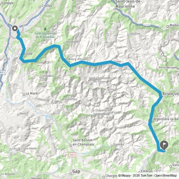 Au rond-point, prendre la 2ème sortie sur D1091 (Route de Briançon) et continuer sur 3,1 kilomètres
