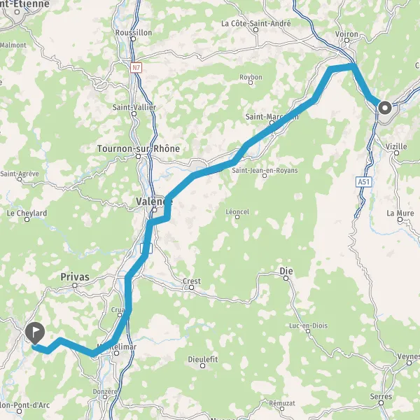 Au rond-point, prendre la 1ère sortie sur N102 (Route d'Aubenas) et continuer sur 8,3 kilomètres