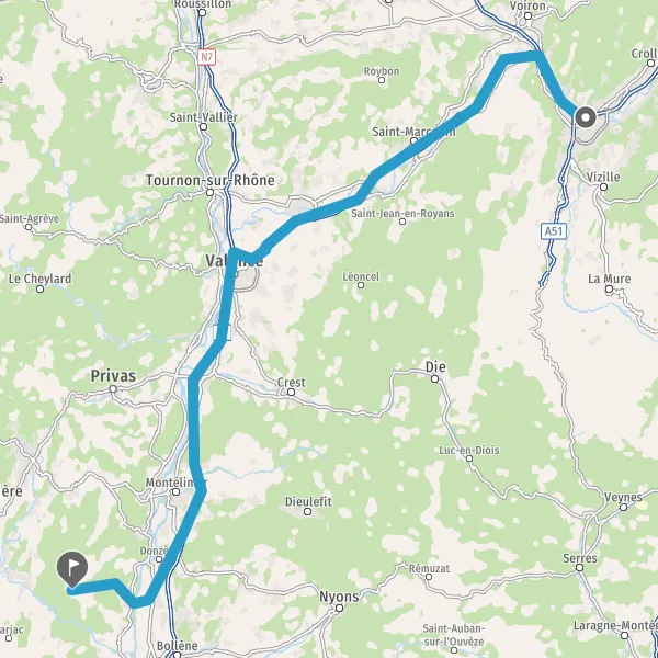Au rond-point, prendre la 2ème sortie sur N7 (Gresse) et continuer sur 2,5 kilomètres