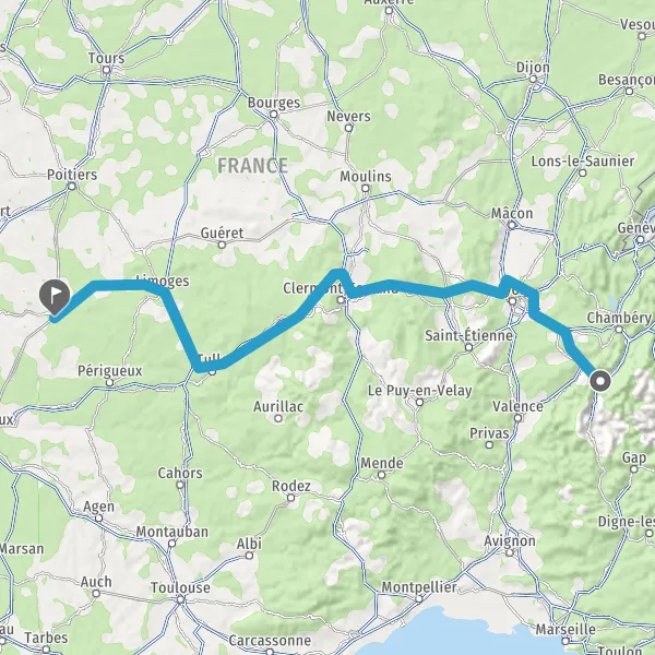 Prendre à droite et rejoindre A89 E70. Continuer sur 161 kilomètres