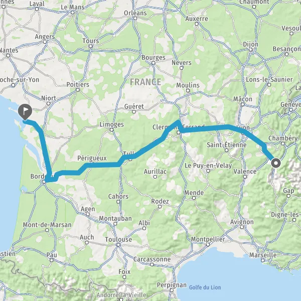 Prendre à droite et rejoindre A89 E70. Continuer sur 161 kilomètres