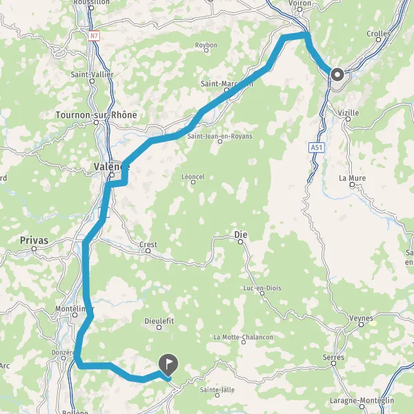 Prendre à gauche et rejoindre A7 E15. Continuer sur 50 kilomètres