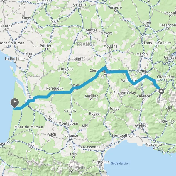 Prendre à droite et rejoindre A63. Continuer sur 22 kilomètres