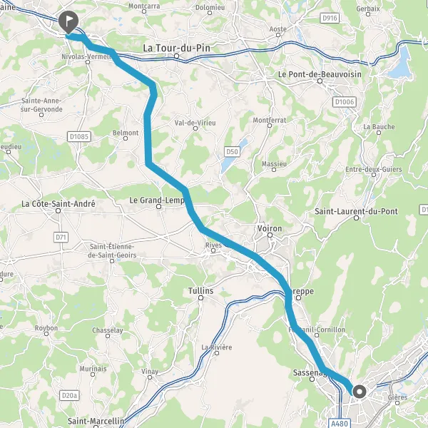 | Distance en voiture | 65 km à 68 km |