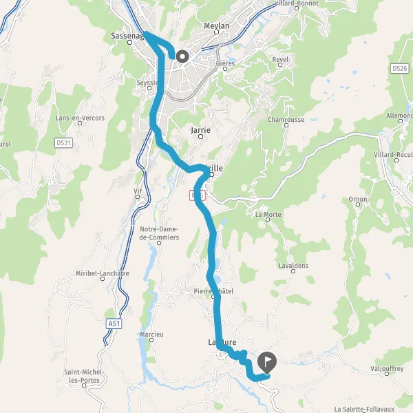 Prendre à droite et rejoindre N85 D1085 (Route de Laffrey). Continuer sur 6 kilomètres
