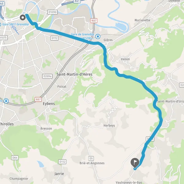 | Distance en voiture | 14,4 km à 17,7 km |
