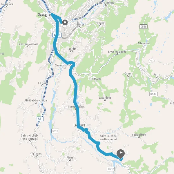 Prendre à droite et rejoindre N85 D1085 (Route de Laffrey). Continuer sur 6 kilomètres