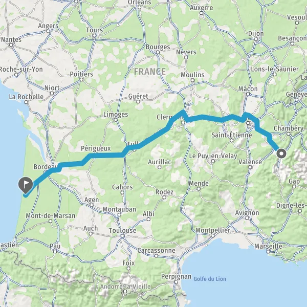 Prendre à droite et rejoindre A63. Continuer sur 25 kilomètres