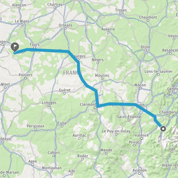 Prendre à droite et rejoindre A43 E711 E70. Continuer sur 34 kilomètres