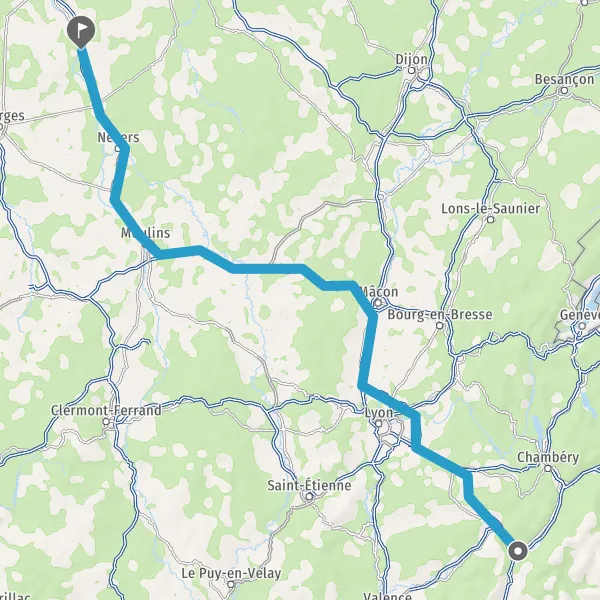 Prendre à droite et rejoindre A43 E711 E70. Continuer sur 26 kilomètres