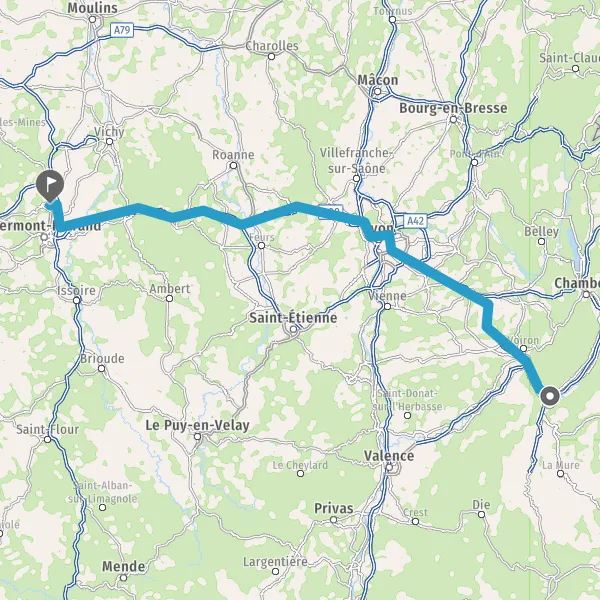 Continuer et rejoindre A89 E70. Continuer sur 83 kilomètres