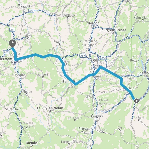 Continuer et rejoindre A89 E70. Continuer sur 83 kilomètres