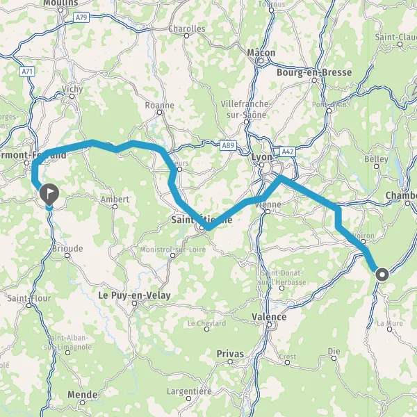 Continuer et rejoindre A89 E70. Continuer sur 77 kilomètres