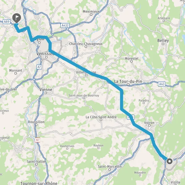 Continuer et rejoindre D383 (Boulevard Laurent Bonnevay). Continuer sur 6,3 kilomètres