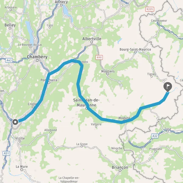 Prendre à droite et rejoindre A43 E70. Continuer sur 19 kilomètres