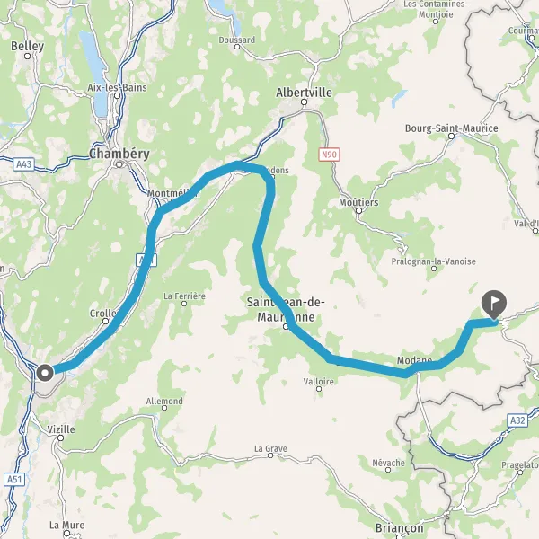 Prendre à droite et rejoindre A43 E70. Continuer sur 19 kilomètres