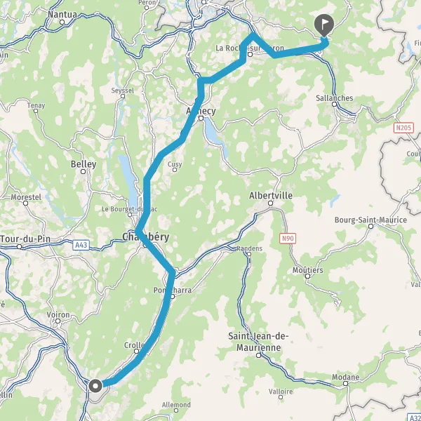 Prendre à gauche et rejoindre D1205 (Route de Cluses). Continuer sur 40 mètres