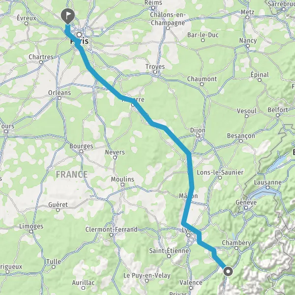 Prendre à droite et rejoindre A6. Continuer sur 294 kilomètres