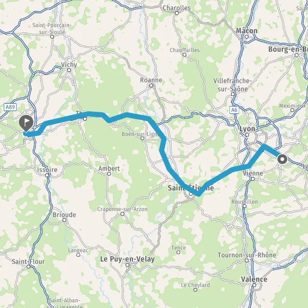 Prendre à droite et rejoindre A72. Continuer sur 53 kilomètres
