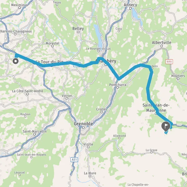 Prendre à droite et rejoindre A43 E70. Continuer sur 51 kilomètres