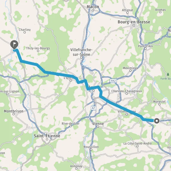 Prendre à gauche et rejoindre A72. Continuer sur 800 mètres