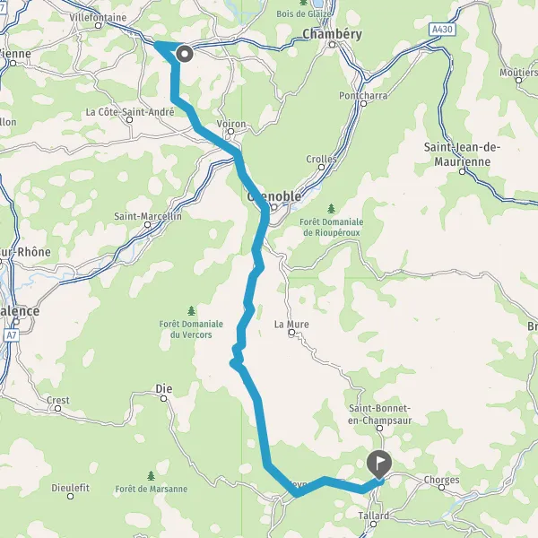 Prendre à droite et rejoindre N85 D1085 (Route de Laffrey). Continuer sur 6 kilomètres