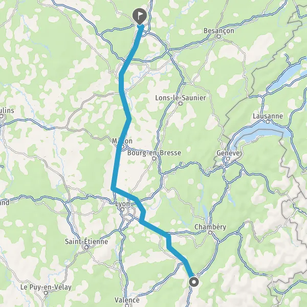 Prendre à droite et rejoindre A43 E711 E70. Continuer sur 26 kilomètres