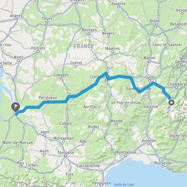 Prendre à droite et rejoindre A43 E711 E70. Continuer sur 34 kilomètres