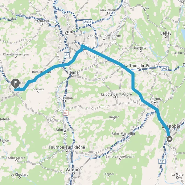 Prendre à gauche et rejoindre A46 E15 E70. Continuer sur 21 kilomètres